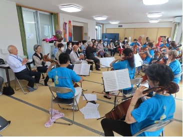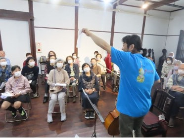 会津コース。3つの訪問先で100名以上の来場者。時に笑わせ、歌い、そして簡単なインタビューも。前日のコンサートに続くキャラバンは無事終了。お疲れさま。