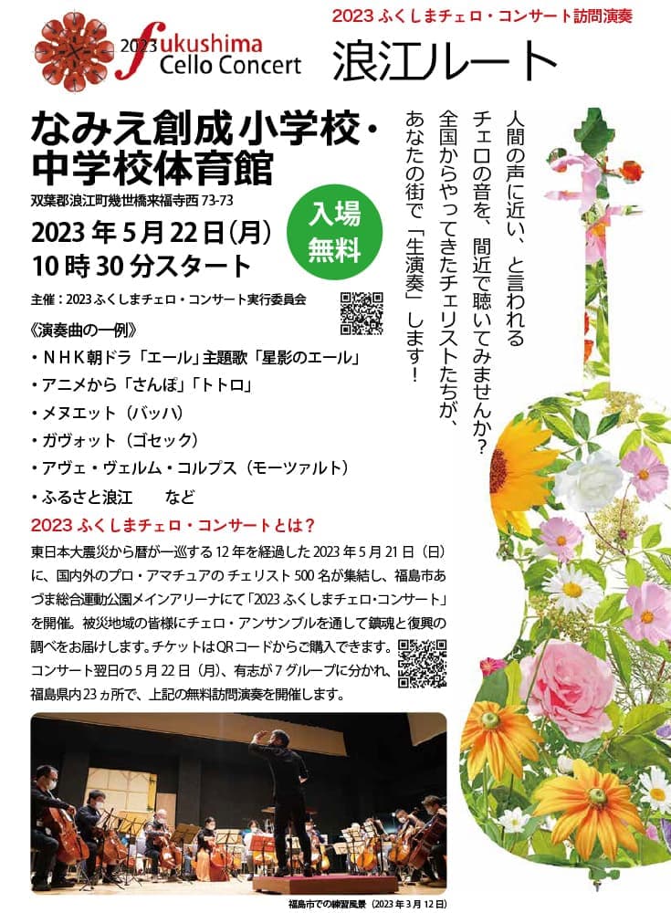 そんな状況下で、2022年の6月に齋藤さんから福島県大熊町の帰宅困難区域のうち特定復興再生拠点区域(復興拠点)の避難指示が解除されることと、あわせて、「心の復興」をテーマに、2023年5月に福島の地で800人のチェロ・コンサートを行うとのご連絡をいただきました。