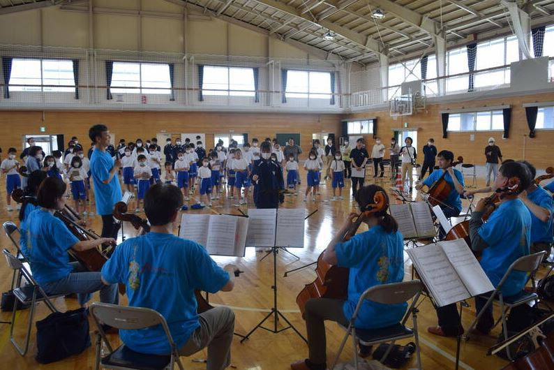 曲が進み、少し飽きが見えてきた小学生が「次は校歌です」という一言に「歌える!」と、進んで大きな声で歌ってくれたことが印象的でした。実は「開校して間がない学校なので小学生は新しい校歌をよく知らないのではないか」と前日まで懸念しておりましたが、まったく余計な心配でした。