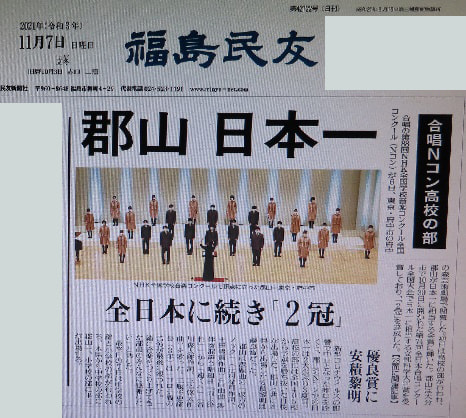 2021年ではAグループ金賞が安積黎明、Bグループ金賞が会津と郡山高校。中学の部も、同声で金賞郡山第1,郡山第6,銀賞郡山第7。そして、10大会連続金賞に会津高校、文部大臣賞4校中2校が郡山高校、郡山第1,大分知事賞2校独占の安積黎明、会津高校。
